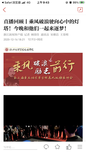 浙江新闻客户端对本场评选活动进行了全程现场直播