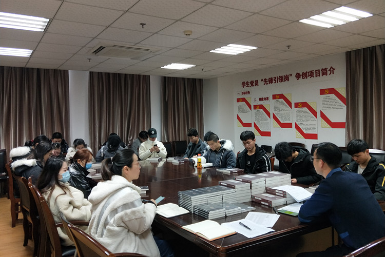 学院召开读书会,分发书本,鼓励同学们读书并写下学习心得