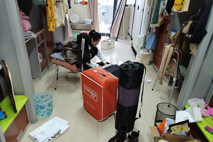 同学们在整理新宿舍