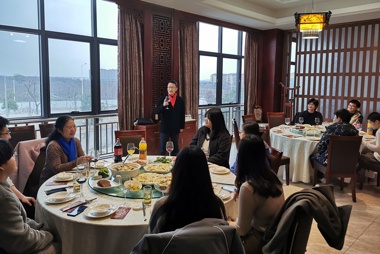 绍三鲜、安昌腊肠、红焖仔排、葱油扇贝、五香牛肉和酸菜鱼.......牛年新春佳节到来之际,农历腊月二十九中午,学院北区兴越楼二楼教工餐厅迎来了一批特殊的客人,由学院院长沈红卫、副院长李黎和相关部门教职工及16位留校学生组成的“临时大家庭”欢聚一堂,共享年夜饭,一起品尝舌尖上的绍兴美食和“家”的味道。