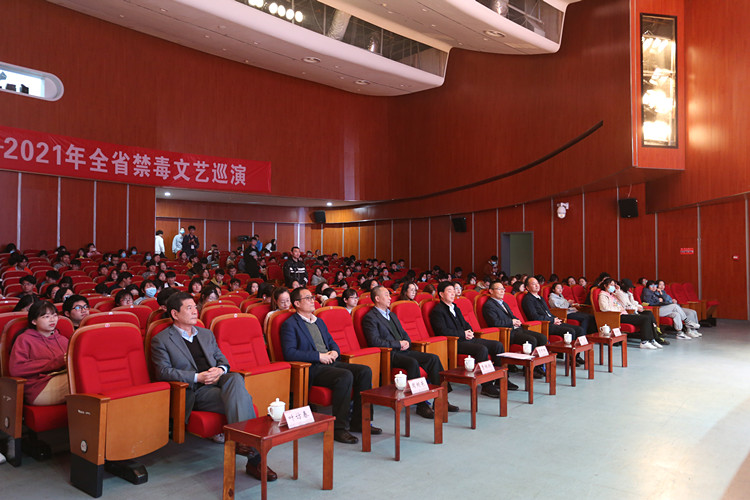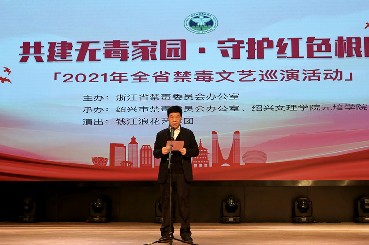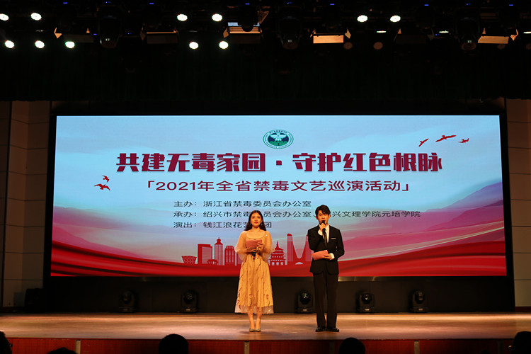 4月14日下午,由浙江省禁毒办主办、绍兴市禁毒办和我院共同承办的“健康人生 无毒家园”2021年全省禁毒文艺巡演活动走进绍兴,并在我院上演了一场精彩纷呈的禁毒专题宣传演出。市委政法委办公会议成员、二级调研员曹银翔、市禁毒委副主任、市公安局副局长项万林、市禁毒委副主任、市司法局二级调研员周朔东、市总工会副主席何贝、学院党委书记叶访春、党委副书记石旭明、市禁毒支队支队长徐华良、越城区公安分局副局长杨尧康出席活动,各分院学生代表300余人参加活动。