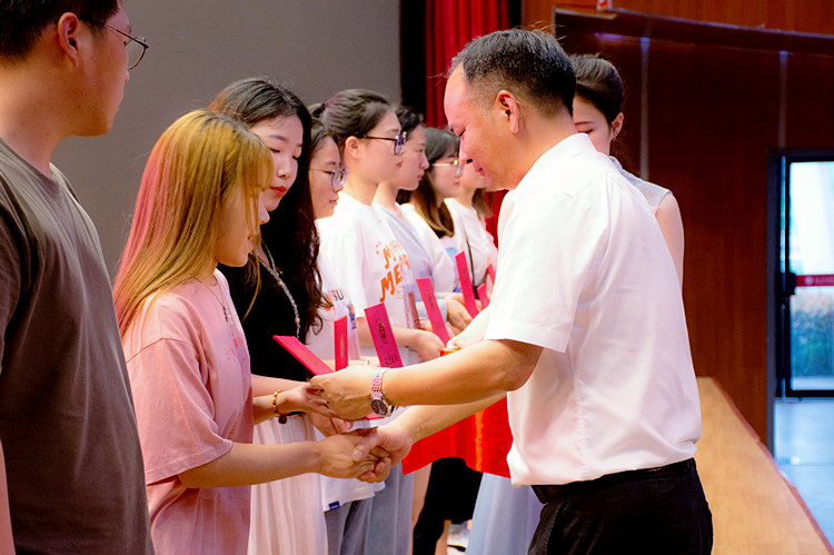 学院党委副书记石旭明为优秀学员代表颁发荣誉证书