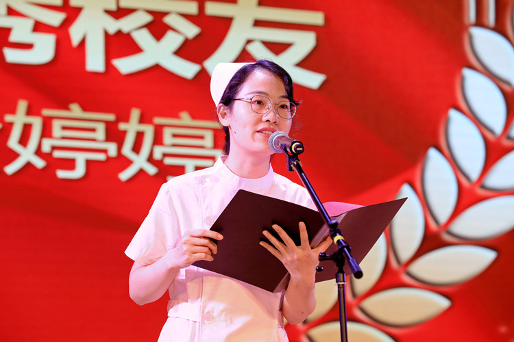 沈红卫致辞,代表学院领导班子向护理专业的师生致以节日的问候,向长期以来支持和关心我院护理专业建设发展的领导和社会各界朋友表示衷心的感谢,并简要介绍了学院办学和医药与健康分院建设发展基本情况。他指出,在全国疫情防控阻击战打响后,分院充分发挥专业优势,组建医护抗疫志愿队、防疫宣教团,为全校师生做好测温、医护咨询、防护宣传等服务。同时一大批优秀校友白衣执甲,在疫情防控第一线贡献青春和力量。恰逢中国共产党百年诞辰,希望元培护理学子牢记总书记的嘱托,沿着党的百年足迹,接过前辈手中的蜡烛,奋发学习强本领、践行医者仁心,以优异成绩向建党100周年献礼。