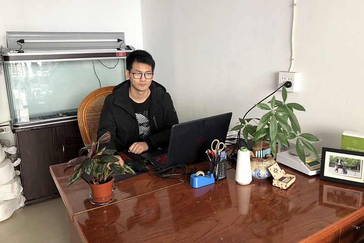 潘越军,2016届纺织工程专业毕业生。凭借在大学里所学的专业知识和实践,毕业后通过对纺织市场行情了解后,从事纺织纱线原料贸易工作,并独自创办了杭州节远纺织品贸易有限公司,主要生产和销售花式纱线,目前准备扩大生产能力,拓展外贸国际市场。