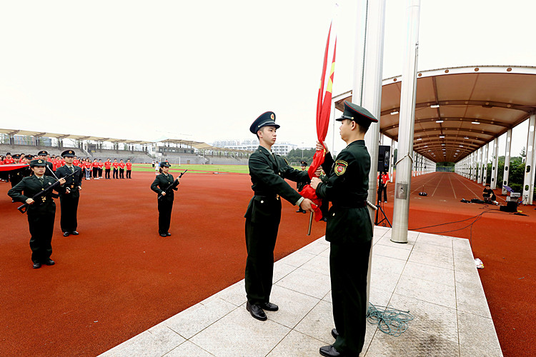 早上7点,在北区田径场,一场庄严的升国旗仪式在这里如期举行。学院党委书记叶访春宣布升国旗仪式正式开始,党委副书记石旭明主持仪式。护旗手们列队整齐,迈着铿锵有力的步伐护送国旗走向旗台。伴随着雄壮的国歌声,鲜艳的五星红旗冉冉升起,迎风飘扬,开启崭新又特殊的一天。全体人员肃立、行注目礼、高唱中华人民共和国国歌。
