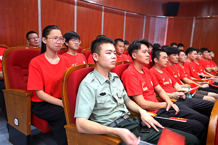 “我志愿加入中国共产党,拥护党的纲领,遵守党的章程......”7点30分,集中宣誓仪式正式举行。在学院党委书记叶访春的领誓下,学院新发展99名学生党员代表整齐列队,高举右手,庄严宣誓。洪亮激昂的宣誓声响彻大厅,一声声铿锵有力的铮铮誓言,展现了党员师生们不忘初心、牢记使命的担当,表达了对党忠诚的炽热情感以及为共产主义奋斗终身的坚定信念和决心,许下了对党忠诚、永不叛党的坚定承诺。