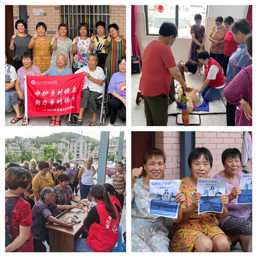 医药与健康分院暑期实践团队深入乡村开展健康教育活动,为乡村振兴奉献当代青年大学生的力量。团队成员来到拥有“衣被天下”美誉的嘉兴王江泾镇,进入镇中的东荷村,在村委会的协助配合下,走进村民家中,通过与村民交谈、问卷调查等方式,实地调研村民的居住水平及健康情况。团队成员还带上血糖仪、血压计走进美丽乡村乐清市清江镇富岩头村村委会和杭州新安村,为村民测量血压、血糖,答疑解惑。同时,送上倾心制作的有关“常见疾病的预防”宣传手册,提高村民对高血压、糖尿病等常见疾病的健康意识。