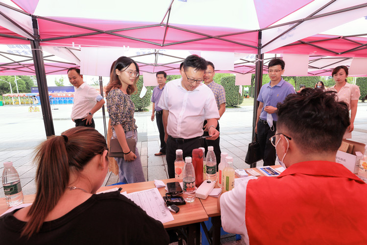 “同学们在吃饭了,慢慢吃,大家辛苦了!”正值中午,校领导汪俊昌、陈均土径直来到迎新现场,亲切看望忙碌之余正在吃饭的迎新工作人员和学生志愿者,向他们表示关心与问候。在各分院报到点,汪俊昌向分院有关负责人详细了解新生报到情况和迎新各项工作落实情况,与迎新一线的师生和志愿者进行亲切交谈,对大家的辛勤工作给予充分认可和赞赏。随后,汪俊昌一行来到学院西大门,走访检查了开学疫情防控工作部署落实和新生报到情况,对学院开学工作的平稳有序给予肯定。