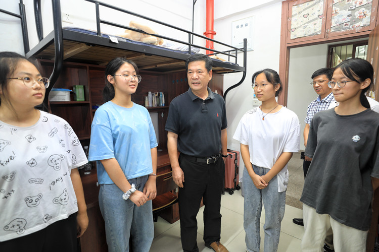 9月7-8日是学院2021级新生开学报到的日子。连日来,叶访春、沈红卫等学院领导先后赴迎新工作现场、校外迎新接站服务点、新生寝室看望2021级新生,慰问迎新工作人员和学生志愿者。深切的慰问和言语的关怀,为奋战在各个岗位上的工作人员和新生们送来了清凉。
