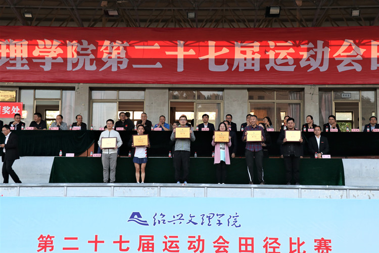 搏击赛场,汗洒金秋。10月29日下午4时,绍兴文理学院第二十七届田径运动会于南山校区落下帷幕。校长王建力,副校长黄坚、陈均土,校纪委书记柯羽,校党委委员、组织部部长宣绍龙,校党委委员、宣传部部长梁瑜以及田径运动会组委会成员在主席台就坐。校党委副书记张宏致闭幕词。学院党委副书记石旭明参加闭幕式,看望慰问我院代表队并与大家亲切交流。本届运动会我院再次取得团体总分第一名,斩获金牌27枚,银牌10枚,铜牌6枚;教工团体总分第三名。