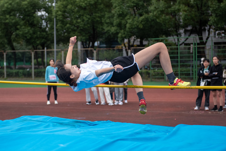无独有偶。在田赛竞技场,也有老将取得新的突破和进步,摆臂、下蹲、起跳、腾空,牛雅婷以4.31米的成绩斩获了女子跳远冠军。去年作为“新鲜血液”初入赛场的她,拿到第三名的好成绩,但牛雅婷对此并不满意。一年的备战期,牛雅婷先是凭借4.13米的成绩拿到院运会女子跳远的冠军,通过积极备战,以赛代练,后又以院运会女子跳远4.31米的优异成绩强势出线,为元培代表队再添一金。从第三名到第一名,虽然只是领奖台的咫尺之间,但牛雅婷却为此付出了不小的努力,她不满足于现状,目光早已投射到了省运动会的舞台。