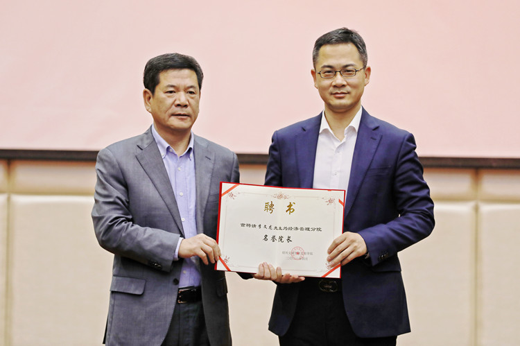学院党委书记叶访春为东盟经济研究院院长、经济管理分院名誉院长李文龙博士颁发聘书