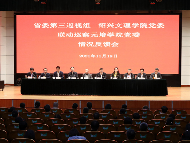 根据省委巡视工作的有关要求和学校党委统一部署,11月19日,省委第三巡视组与绍兴文理学院党委联动巡察元培学院党委情况反馈会在元培学院召开。校党委书记、校党委巡察工作领导小组组长汪俊昌,省委第三巡视组副组长梁山中,校党委副书记、联动巡察组组长张宏,校纪委书记、监察专员、校党委巡察工作领导小组常务副组长柯羽,副校长陈均土,联动巡察组副组长、省委第三巡视组一级调研员朱旭峰,巡察组成员,以及元培学院党政领导班子成员,2016年以来退下来的院级领导,省“两代表一委员”,全体中层干部,高级专业技术职务人员代表,民主党派负责人,教代会执委会成员,学生会主席等参加会议。元培学院党委书记叶访春主持会议。