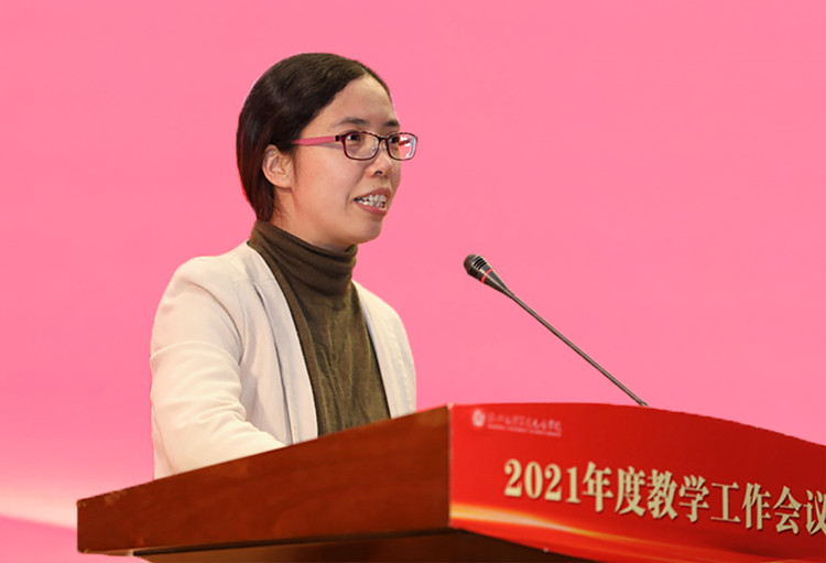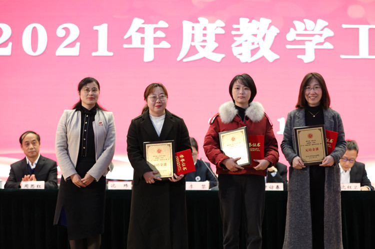 学院副院长沈玮为2020-2021学年认定为“互联网+教学”A级课程的杜轶君、王丽佳、王鉴莺三位老师颁奖