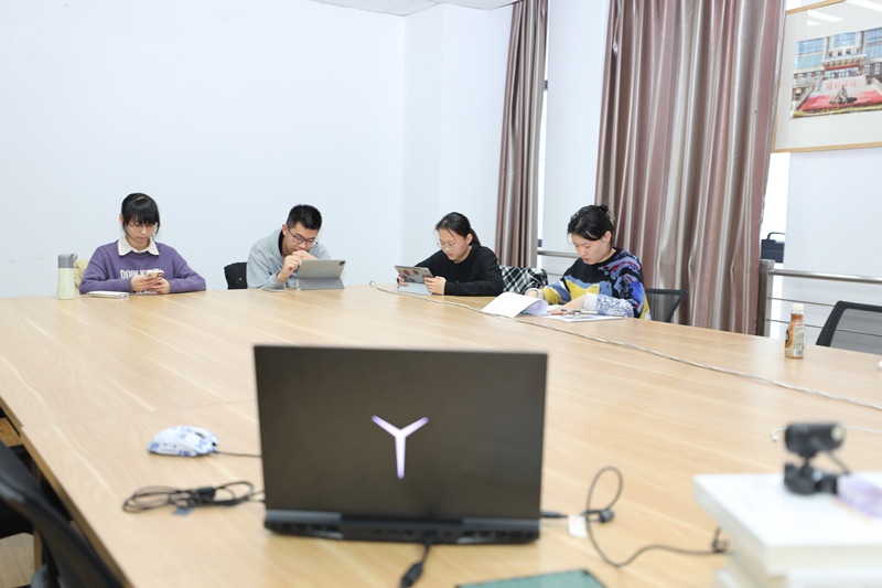 在图书馆大学生媒体中心“卡尔·马克思杯”集训室里,坐着来自多个专业的六位青年:计算机科学1902李杭伦、英语1903应旭艳、汉语言1903钱祎丹、英语1901金荪依、法学1901陈胤桦、法学1901陈蒋磊,六人因“卡马”而相识相知。