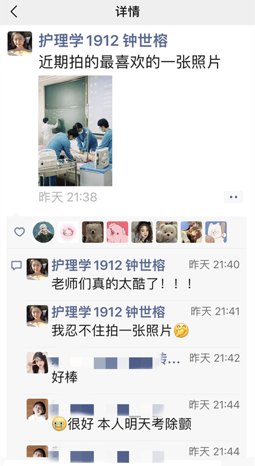 “演示时那种紧张又专业的操作氛围令我感到震撼,心情久久不能平静。”护理学1911陈渊敏说。“救死扶伤、医者仁心。当亲眼看到老师们现场演示,想到每一个专业操作的背后都是他们在临床上成千上万次的重复和历练,让我们再次深刻认识到自己还有很多的不足,老师们身上体现出的那份强烈的使命感和责任感,也激励着我们在今后学习工作过程中要更加坚定和努力。”护理1912钟世榕表示,已把演示过程录进手机,准备反复进行学习。