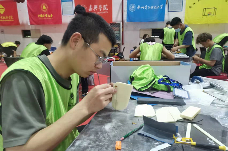 谈起印象最深刻的一次竞赛,是2021年4月在宁波举行的浙江省第九届大学生力学竞赛,从开始准备竞赛到真正走上比赛场地,他只用了四个月。“那次竞赛题目为‘火箭助推遥控滑翔机制作与飞行’,主要是现场制作滑翔机,通过遥控操控飞机飞行,比拼飞机飞行时间的长短。”方鑫介绍说,“准备初期,我和队友先选定机型,分工制作初版样机,用笔把飞机的轮廓描画在纸上,再用打磨机或砂纸将模板按照轮廓磨出来,然后用502胶水将各部分粘在一起,最后一步是装上马达和舵机。”为了提高效率,方鑫与队友们天天泡在实验室里,争分夺秒地制作样机,“早上一起来,就往实验室赶,一坐就是十几个小时,累得不行的时候就趴着休息一会。”回忆起准备比赛的时光,他笑着回答道。