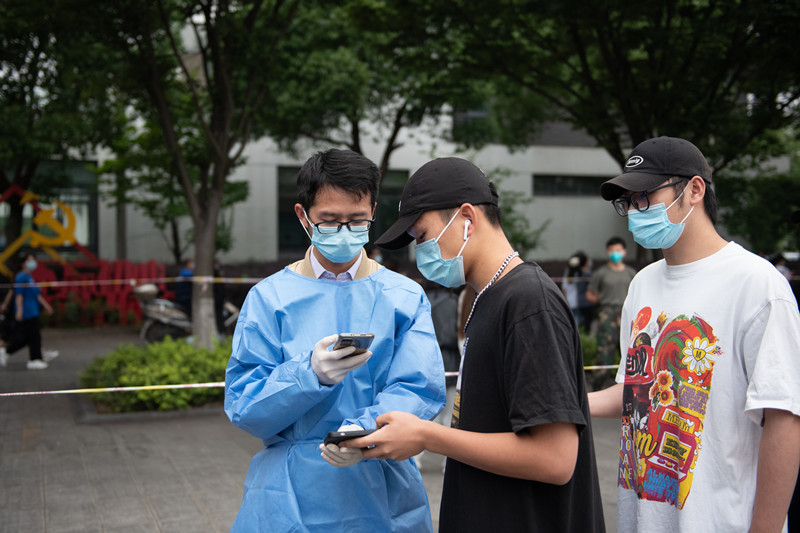 “这次检测开始时间比较早,我们班6点就已经集合完毕。”会计1901连梓怡告诉记者,接到通知后,分院责任区辅导员、班主任第一时间就落实了动员和叫早措施,班委在开检前40分钟到各寝室督促大家进行检测。中语2104何越感慨道:“一边是医务人员有条不紊地进行采样工作,一边是工作人员细致耐心周到的服务,这些都让安静有序等候采样的师生们心里面感觉到暖暖的,相信戮力同心,我们一定能够早日战胜疫情。”