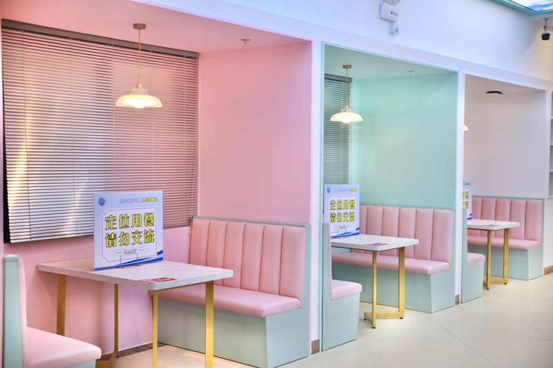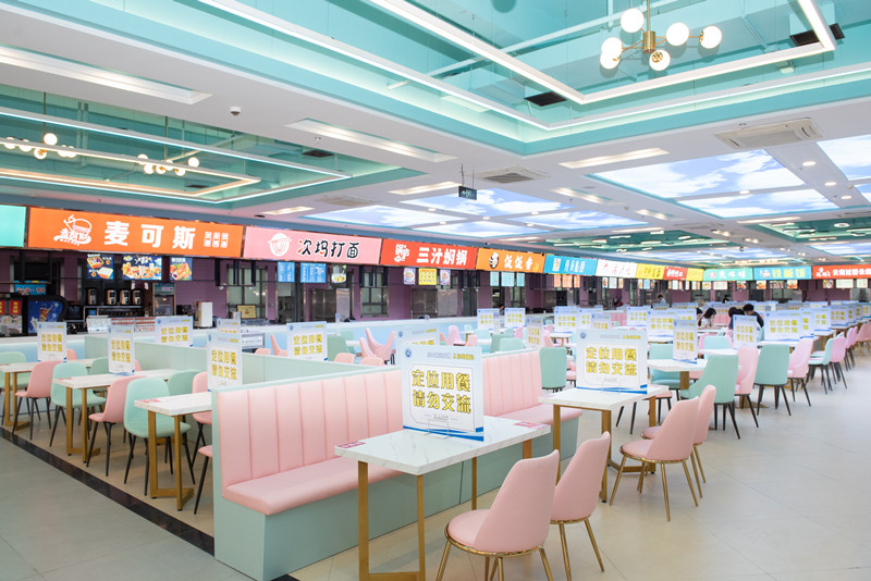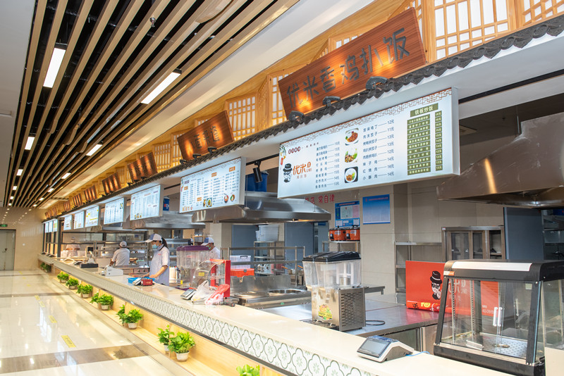 “7月开始装修翻新,8月末才完工。”为给师生提供更优质的就餐服务,群贤楼美食城在暑期进行了整体翻新,不仅有了新的桌椅、引进新的商户、配备一定数量的独立空调包厢、设置就餐观影区,同时还放置了三角钢琴,师生可以一边就餐,一边聆听音乐或观看电影、电视等。“希望在就餐时间给老师、同学们带去惬意的感觉,让大家在紧张忙碌的学习工作之余,有一个放松就餐的好去处。”群贤楼美食城负责人介绍道。