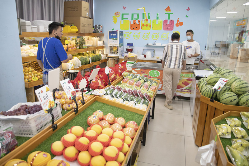 来到超市门口,床上四件套、凉席、脸盆、扫帚、垃圾铲等生活用品按类堆积在南区蓝天超市的货架上下,囤积的洗衣液、抽纸整整齐齐被摆放在超市中,“我们提前采买了学生可能会用到的商品,以便新生补齐所需的生活用品。”超市管理员说。