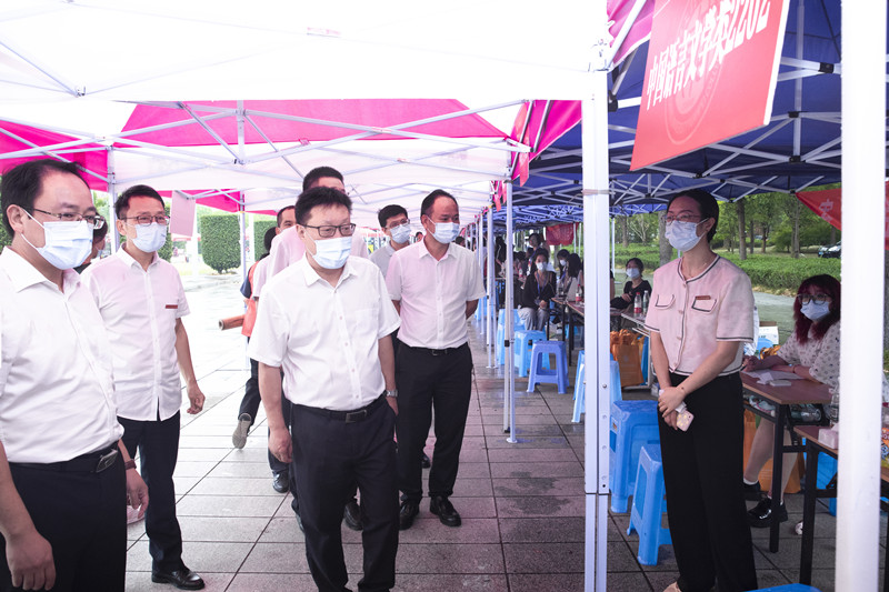 9月2日,我院喜迎2022级本科新生入学报到。当天上午,校党委书记汪俊昌、副校长陈均土一行来院,检查指导学院开学疫情防控和迎新工作,听取有关工作汇报,看望2022级新生,慰问迎新工作人员、学生志愿者。院党委书记梁瑜、院长沈红卫作工作汇报,班子全体成员陪同走访。