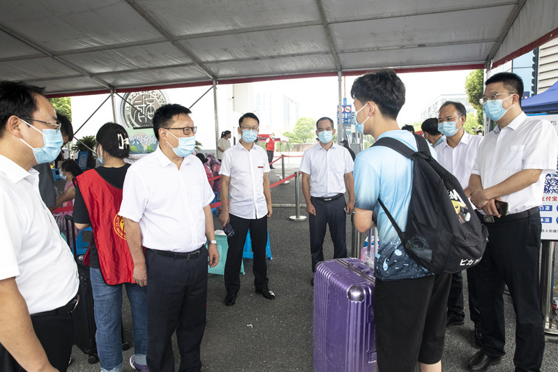 汪俊昌来到各分院迎新报到处,亲切地与在场分院师生交流,详细了解新生报到情况,对迎新工作过程中安排的行李寄存、防雨通道等服务工作给予充分肯定。在学院西大门口,汪俊昌同新生和家长亲切交谈,勉励同学们珍惜学习机会,同时也欢迎家长们在疫情过后进校看看。在校门外临时核酸检测点,汪俊昌向现场工作人员、学生志愿者详细了解新生核酸检测情况,对学院平稳有序、扎实有效的疫情防控工作表示充分肯定。