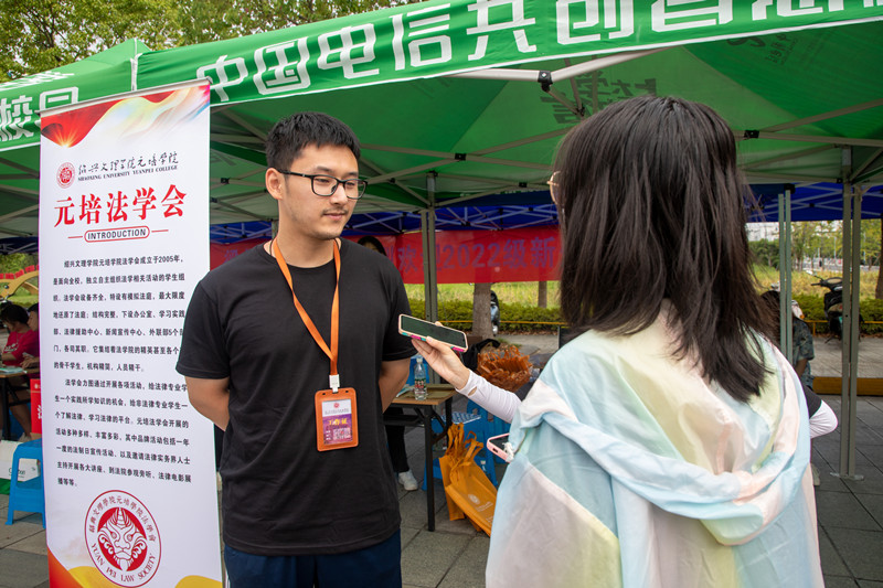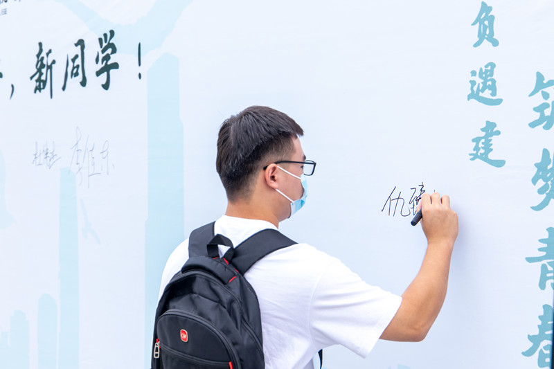 迎新花样多,共筑初印象。为迎接新生的到来,各分院纷纷开启“花样迎新”模式,一个个别出心裁的小创意,让新生们刚踏入校门就感受到了浓浓的家的温暖。“一二三,茄子!”在语言文学分院迎新展板前,新生们纷纷合影,留下初入元培的独特印记;医药与健康分院准备了以“抗疫”为主题的环保袋;梁柏台法学院为新生提供免费的矿泉水以及装有口罩和温度计的防疫物资;经济管理分院的学长学姐们自发组织“志愿队”,为新生们提供免费冷饮;纺织服装与艺术设计分院精心设计的“循梦而行的新生”宣传牌更是抓人眼球,吸引新生驻足合影;建筑工程分院的新生们在签名墙上署名,与“朋友圈”立牌合影留念。