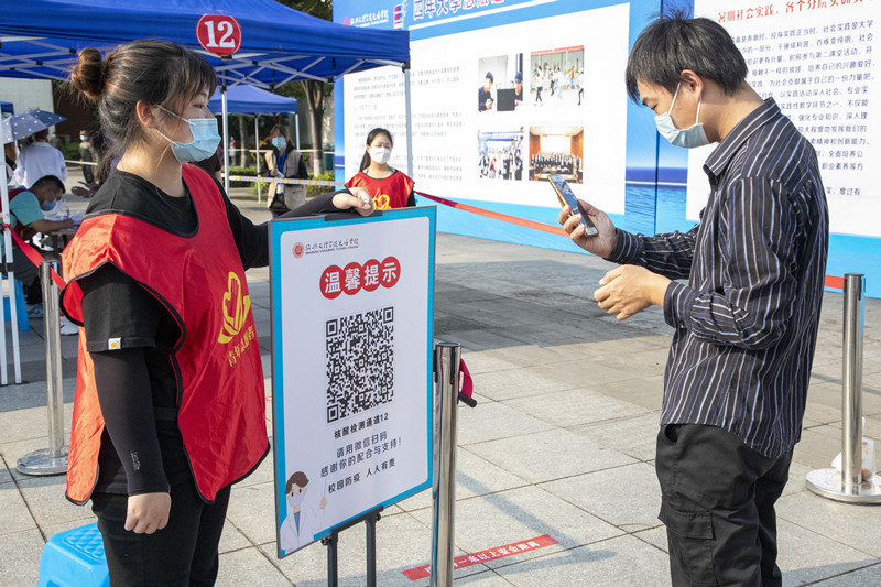 “学院一直以来十分重视疫情防控工作。作为新时代青年,我们理应积极为学院和社会奉献我们的‘青春力量’。”学生志愿者、法学2003班滕泽骞说道。“我负责扫码、录入信息,操作虽然比较简单,但仍需高度专注,不能出现任何顺序上的错误和纰漏。”党员教师志愿者徐丹宁说道。来自中语2201班的蔡心怡谈起在学院参与全员核酸“初体验”:“从昨天下午收到核酸检测通知,到今天早晨完成核酸采集,每一个步骤、流程都秩序井然,多个采集通道的开设,也大大提高了采集效率,令人安心又暖心。”药学2001班郑安琪表示,新学期开学,疫情防控很关键,作为学生,既要积极配合做好常态化核酸检测,又要做好个人防护,让自己安心的同时也让学院放心。