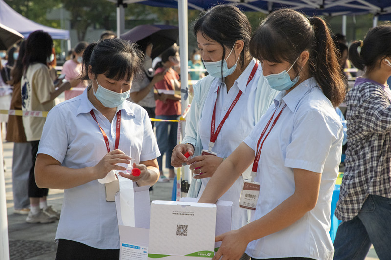 根据当前常态化疫情防控工作需要,为确保全院师生平稳、有序、安全开学,全力保障各项工作顺利开展,进一步筑牢校园疫情防控安全防线,9月6日上午,全院8000余名师生员工及留外楼教职工家属在元培广场分时段、分批次有序进行核酸检测。