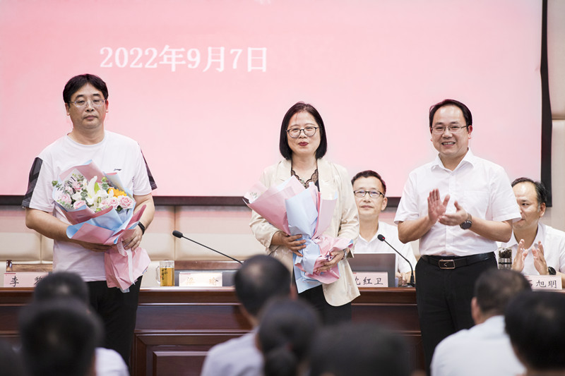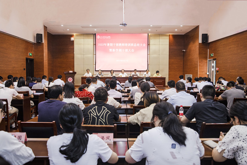 在全国第38个教师节来临之际,9月7日下午,学院在图书馆828会议中心召开2022年暑期干部教师读书班总结大会暨新学期干部大会,贯彻落实省第十五次党代会精神,传达学习学校暑期干部读书会和开学干部会议精神,全面总结上半年学院工作,研究部署下半年重点工作。院党委书记梁瑜讲话,院长沈红卫主持大会,院党政班子成员、全体主管级以上干部、任教满30年教师、教职工代表出席大会。