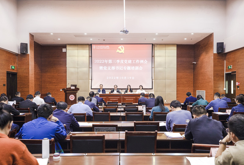 10月19日上午,学院第三季度党建工作例会暨党支部书记专题培训会在图书馆828会议中心举行。院党委书记梁瑜和党委班子成员出席会议。党委副书记、纪委书记俞国芬主持会议。党群部门负责人、二级党组织负责人、专兼职组织员和全体基层党支部书记参加会议。