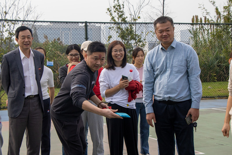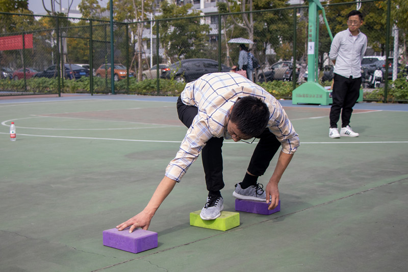 “加油,稳住”“脚步不要乱”“别紧张”,在“沙包掷准”项目中,运动员们手拿沙包,跃跃欲试,争取将沙包丢进最高分的区域中。马克思主义分院秦海芬分享了第一次参加教职工趣味运动会的感受,“感觉既刺激又好玩,夹球跑接力的时候,要稳住心态,步步扎实,才能更快完成接力。”学工部何扬作为“老将”,在“摸石头过河”项目中,娴熟地起身更换泡沫砖,手脚流畅地配合着,向比赛终点前进,“赛前赛后,我们收获了很多欢笑。”