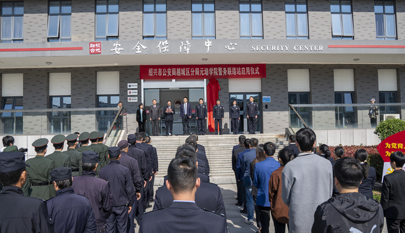 11月7日上午,绍兴市公安局越城区分局元培学院警务联络站启用仪式在图书馆一楼安全保障中心举行。校党委委员、副校长陈均土,市公安局党委委员、越城区副区长、分局党委书记、局长胡旭东,院党委书记梁瑜,绍兴市公安局政保支队副支队长董建洲,分局党委委员、政治处主任潘瑜,分局党委委员、副局长金幸,院党委副书记石旭明,党委副书记、纪委书记俞国芬,越城区公安分局各科室负责人、阿屈工作室民警、学院相关职能部门负责人、师生代表出席仪式。仪式由院长沈红卫主持。