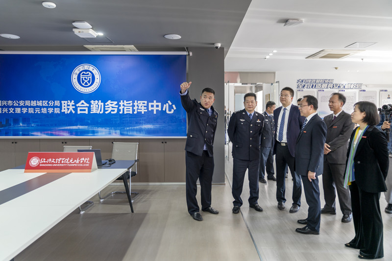 胡旭东指出,经过近半年的筹备建设,绍兴市域内首个高校警务联络站正式建成。元培学院警务联络站的成立,对积极探索实践高校领域枫桥警务模式,进一步提升警校共建和基层治理水平具有重要意义。他强调,一要强化履职担当,守牢安全稳定底线。把维护政治安全放在工作首要位置,确保校园政治安全;二要加强协同配合,牵好矛调服务连线。加强沟通联动与研判会商,为师生提供更加便捷、高效、优质的服务;三要紧盯突出问题,筑牢宣传教育防线。常态化开展各类安全教育,切实保护师生生命财产安全;四要多方借力合作,深化平安共建战线。以点及面做好全区各所高校阵地管控工作,携手打造师生共治、平安共享的校园新“枫”景。