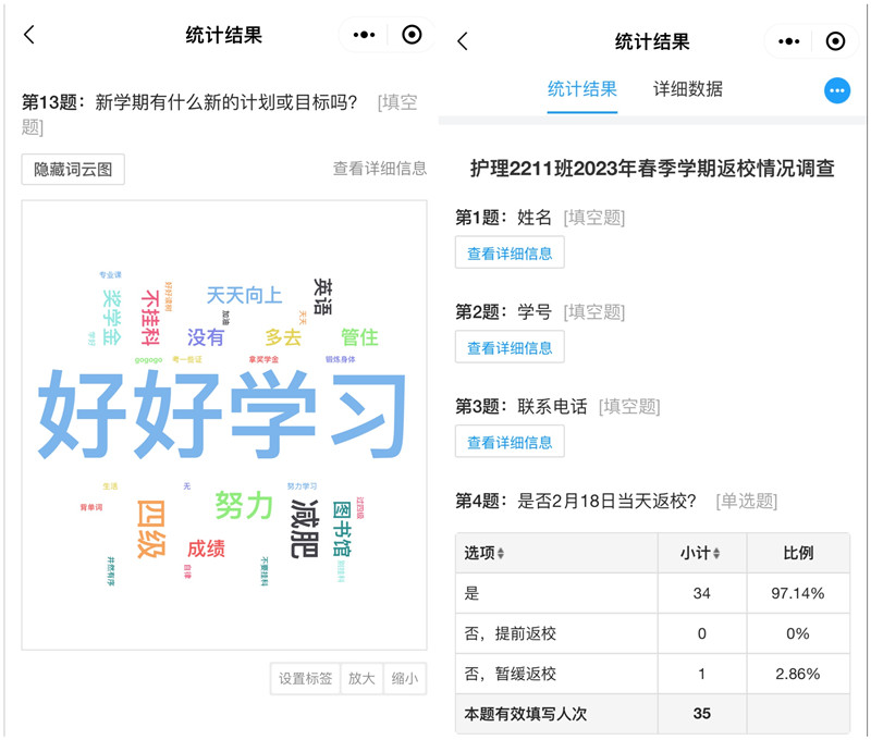 本学期开学前,学院组织了7个学院、250多个班级召开线上班会,200余名班主任通过云端相聚的方式,与8816名学生畅谈规划、化解焦虑、共话成长。为了促进学风,更好的了解学生,班主任在开学前作了一次问卷调查,同时勉励大家树立信心,尽早收心,以全新的姿态投入到新学年学习中,小小的举动感动了同学的心。