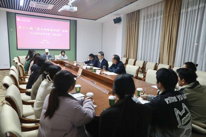 为进一步深入听取学生的意见、建议,更好搭建学院与学生沟通的平台,满足青年学生成长成才的需求,提升学院管理育人、服务育人的针对性与实效性,3月29日晚,学院第十二期“我与老师面对面”活动在国际文化交流中心203会议室举行。学院院长沈红卫、党委副书记石旭明与来自全院不同专业的15名学生,就“十大民事实事工程意见征求”主题开展面对面交流,学工部负责人等参加活动。