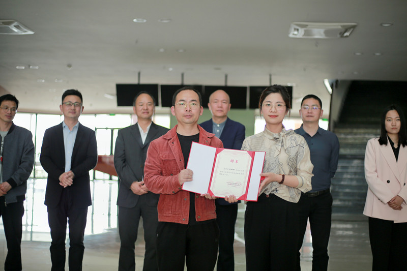 教育部中华优秀传统文化传承基地(书法)副主任陈文龙为学院授予“兰亭书法学堂”铭牌