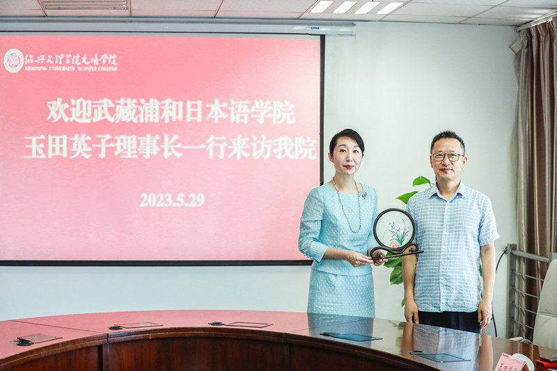 5月29日上午,武藏浦和日本语学院玉田英子理事长一行来院访问交流。学院院长沈红卫出席会议,党委、院长办公室,招生就业处,经济管理分院,纺织服装与艺术设计分院等相关负责人参加座谈。