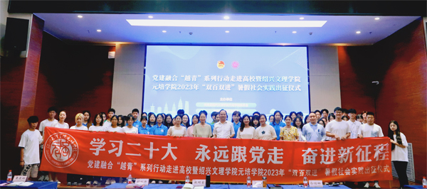 为团结引领青年学生进一步坚定信心、奋发作为,在社会课堂中受教育、长才干、作贡献,7月3日,我院举行党建融合“越青”系列行动走进高校暨学院2023年“双百双进”暑假社会实践出征仪式。