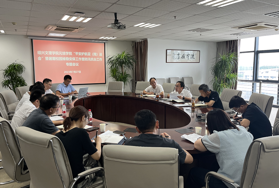 为进一步夯实暑期学院安全维稳工作,确保假期校园安全稳定。7月27日上午,学院召开平安护航亚(残)运会暑期校园维稳安保工作暨防汛抗台工作专题会议,院党委书记梁瑜,院长沈红卫出席会议。院办、组宣部、学工部、保卫处、教务处、基建后勤处、资产管理处、资产经营公司等相关职能部门负责人和二级分院党政负责人参加会议,会议由院党委副书记石旭明主持。