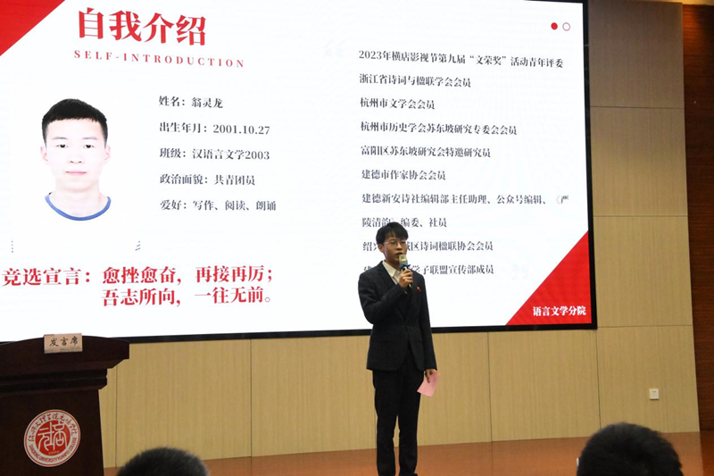 本次评审展示会共有来自7个分院的13位优秀学生参与评选,每位学生用5分钟的时间从思想素质、学习成绩、学术科研能力、创新能力、社会实践、综合素质等方面对个人在校期间的表现进行全面汇报展示。他们中有“钻坚研微,永不言弃”投身于产学研转化、在创新创业大赛中屡获佳绩的竞赛达人,有“传承红色基因,弘扬法治精神”的“非典型多面体”法学青年,有“服务意识,责任于心”的安宁疗护队队长,有“勤学善思,励志向上”综测成绩达97.87分的乐团副团长……展示会上,每位候选人自信大方,滔滔不绝,全面展现元培学子奋勇争先、全面发展、追求卓越的精神。