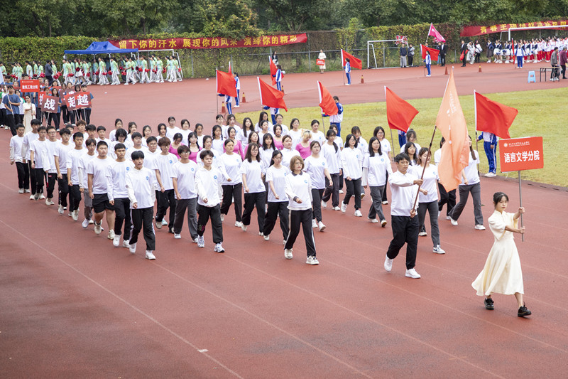 学院副院长李黎致开幕词,代表学院向此次运动会的顺利召开表示祝贺。她表示,一年一度的运动会不仅是学院体育工作的成果展示,也是对师生精神面貌和综合素质的一次大检阅,更是深入贯彻落实党的二十大报告中提出的“促进群众体育和竞技体育全面发展,加快建设体育强国”的生动实践。她回顾了近年来学院体育事业发展概况和取得的突出成绩,激励师生员工不断弘扬奥林匹克运动精神和中华体育精神,激发广大师生为学院争光的拼搏斗志,增强校园正能量。