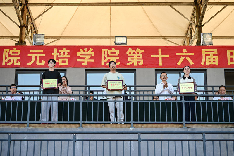 梁瑜致闭幕词,他指出,一年一度的运动会是全院的体育盛事,是学院推进素质教育与校园文化的重要载体,更是一场体育精神和元培文化完美融合的盛会,展现了元培人顽强拼搏的奋斗精神、同心协力的团结精神和自信自强的进取精神。希望全体同学能将本届运动会上呈现出的良好精神面貌延续到学习生活中来,做一名健康阳光,向上向善的活力学子;希望全体运动员再接再厉,在新征程上再创佳绩;希望全体师生脚踏实地真抓实干,接续奋斗,努力开拓新境界。