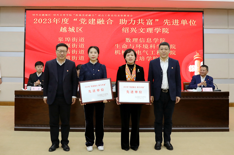 近日,绍兴文理学院党委与越城区委在风则江校区图书馆报告厅举行绍兴市越城区-绍兴文理学院“校地党建融合”试点工作总结表彰推进会。会上,学院被评为2023年度“党建融合 助力共富”先进单位。