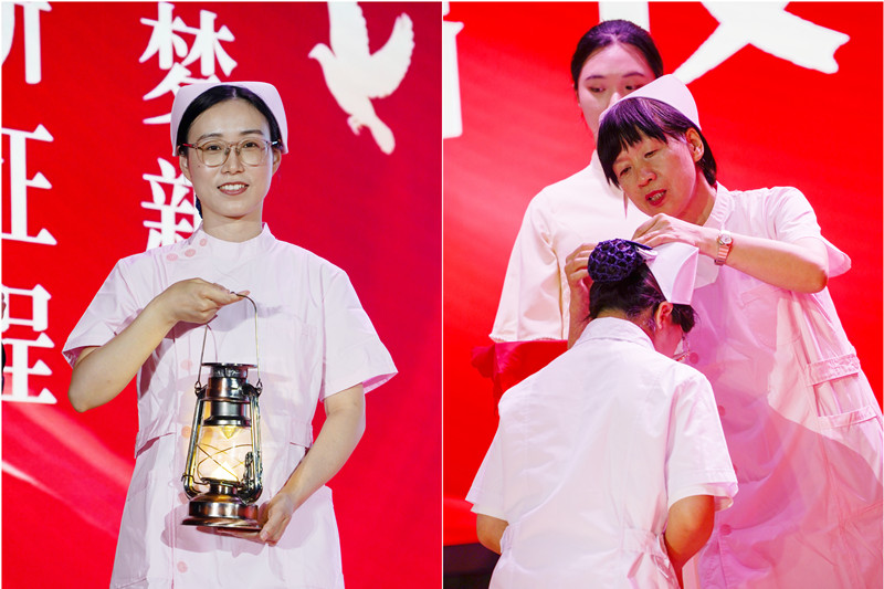 薪火相传,未来可期。授帽仪式上,何振华老师、窦凤娇老师为学生点燃象征南丁格尔精神的红色蜡烛,并依次传灯,点亮现场所有“护生”手中的蜡烛;护理前辈为现场所有学生代表授帽,全体学生在马红丽老师的带领下庄严宣誓。