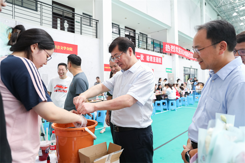 在师生活动中心,工作人员全情投入服务新生报到,为新生耐心讲解报到流程,帮助新生有条不紊地完成各项报到程序。各分院为新生精心准备了温馨浪漫、实用好看的专属大礼包,还有丰富多彩的专属活动,用真心真情为新生们打造温暖的“新家”。迎新现场还设置了绿色通道等一站式服务,助力新生入学无忧。一群群师生志愿者奔前忙后,温暖助力新生报到,全程服务一路相随,为这次跨越山海的赴约保驾护航。
