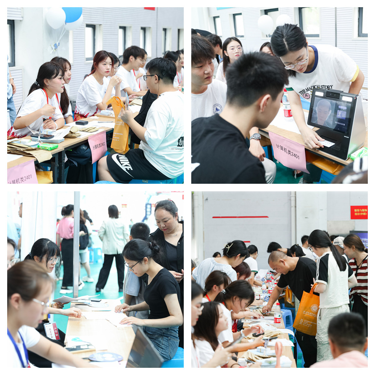 “你好,我是志愿者,让我来帮你吧。”“同学,请出示录取通知书、身份证。”当天上午,首批2024级新生在学院教师、工作人员和志愿者引导下,顺利完成身份核验、资料审核等一系列报到流程。现场秩序井然,服务细致温馨。