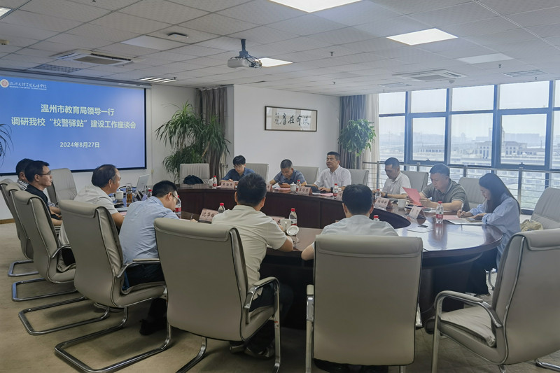 近日,温州市教育局高教处处长吕信恩,温州大学、温州肯恩大学、温州职业技术学院三个高校保卫处负责人一行来院调研“校警驿站”建设运行情况。双方主要围绕校警驿站建设、运行机制、特色亮点、校地联动等方面进行深入交流。学院党委副书记石旭明、绍兴市教育局高教处处长沈华梅,警务专员张幼良、“阿屈工作室”负责人屈伟军、保卫处负责人等陪同调研。