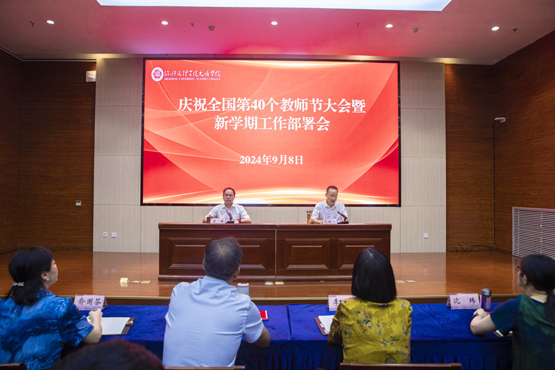 9月8日下午,在全国第40个教师节来临之际,学院在图书馆828会议中心召开新学期干部大会,传达学习贯彻党的二十届三中全会精神,总结干部读书会暨干部能力素质提升班学习活动,回顾上半年主要工作,部署新学期主要任务,并庆祝全国第40个教师节。学院党政领导班子成员、全体主管级以上干部出席大会。大会由学院院长沈红卫主持。