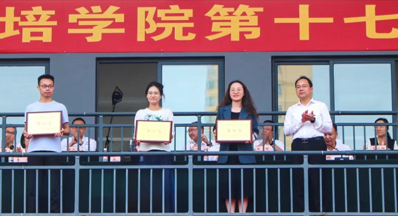院领导为获奖代表队颁发奖牌,信息与机电工程分院、医药与健康分院和建筑工程分院荣获学生团体比赛前三名;建筑工程分院、纺织服装与艺术设计分院和医药与健康分院荣获精神文明奖;机关分工会第三小组、机关分工会第一小组和信息与机电工程分院分工会荣获教工组团体前三名。